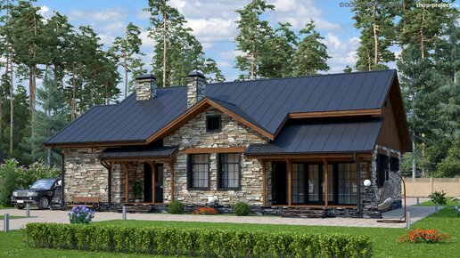 Общая площадь: 146 м². Размеры: 22.6 x 13.3 м. И снова здравствуйте, дорогие друзья! Будьте здоровы и счастливы! С Вами как всегда, потрясный архитектор Номернабис. Представляю Вам ещё один проект интересного дома. На сей раз это дом в стиле ранчо. Ну мне так видится. Может я не прав, жду Ваших мнений. Этот стиль один из самых популярных в «одноэтажной» Америке. Впитав в себя нюансы других стилей, черты бунгало и «построек прерий», он окончательно сложился в начале прошлого столетия. Невысокие дома-ранчо «распластаны» вширь, усложнены пристройками, оштукатурены и окрашены светлыми красками...
