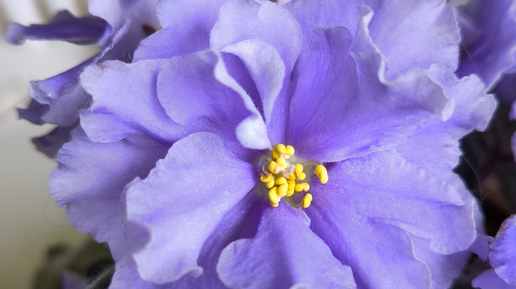 На днях моя скромная коллекция сенполий пополнилась новым цветком. При чем случилось это совершенно не запланировано. Вернувшись с работы домой мы обнаружили кучу горшков с цветами на лестничной площадке между этажами. Видимо наша соседка, которая давно собиралась переезжать, все таки решилась на этот шаг и не захотела везти большую часть своей оранжереи в новую квартиру. Большая часть цветов находилась во весьма плачевном состоянии, но мне досталась классная фиалка с полумахровыми волнистыми ярко-голубыми цветами...