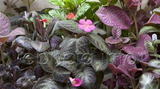 Эписция принадлежит к сем. геснериевые (Gesneriaceae). Название рода Episcia происходит от греческого "episkios" - темный, затененный. В английских источниках эписции называют: "Flame Violet", что означает "Фиолетовое пламя", "Peacock Plant" (Павлиний цветок"), "Chameleon Plant" ("Растение-хамелеон") или "Orange african violet" ("Оранжевая африканская фиалка"). Род Episcia весьма немногочисленный - в него входит всего около 10 видов растений, из которых E. densa (плотная), E. sphalera и E.villosa...