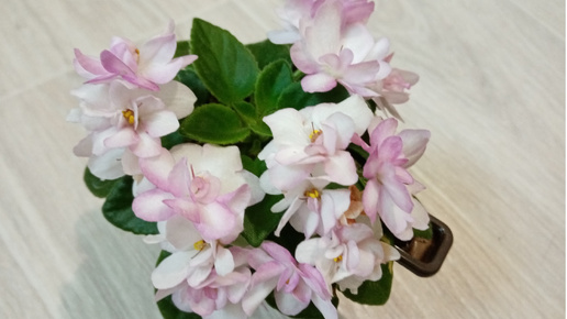 В моей коллекции фиалок на сегодня один из нежнейших сортов -это фиалка миниатюра А. Кузнецова "СК-Яблоневый сад". Любимая красавица завораживает с первого цветения. Начну с описания сорта, как я уже сказала выше, сорт мини фиалки соответственно диаметр розетки 10-15 см. Сорт выведен в 2012 году известным селекционерам в России Алексеем Кузнецовым. Сорт актуален по сей день. По сорту: Цветы схожи с цветущее яблоней, только ни одна яблоня не цветет так долго как этот сорт фиалки. Цветение шапочное до 2-х и более месяцев...