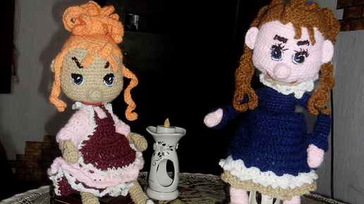 мои куклы вязаные крючком Фиалка , Розочка и Ландыш серебристый..тоже без мк...уже не повторю)