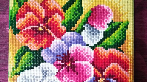 Фиалки.Алмазная мозаика, готовая работа