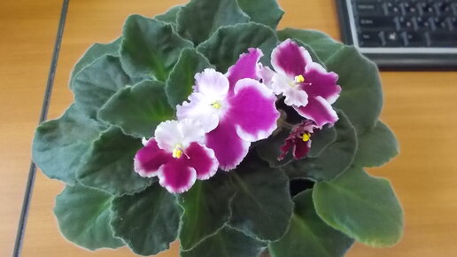 Зацвела фиалка. Необычная. Не просто двухцветная, а еще и с каемочкой. Правда, двухцветные фиалки у меня, почему-то, долго не живут... А на солнечной стороне улицы на клумбах цветут белые фиалки. Они же на теневой стороне - только всходят. На солнечной стороне, вообще, давно все цветет. Примулы. "Невеста" спирея. Сегодня у нас похолодало, утром было всего +1. И дождь шел со снежной крупой. Вот это май! Кормушку дома решила пока не убирать...