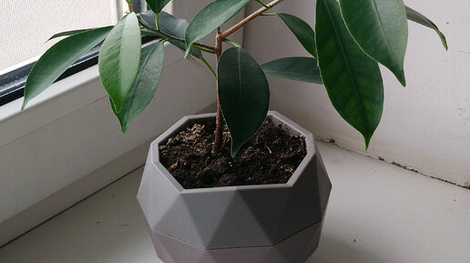 Вырастить свое маленькое и кривое деревце не так-то просто. На процесс создания такого растения требуется много времени. Веточку, из которой планирую вырастить бонсай, посадила и начала формировать в ноябре 2023 года, о чем подробно написала в первой части. Постепенно начала отгребать грунт от ствола, оголяя корни. Видимо, немного поспешила и ствол наклонился. Корни тонкие и слабые, не удержали растущие ветки. Поэтому пришлось пересадить фикус (10.04.24) с целью выпрямления ствола. А чтобы растение не падало, грунтом полностью засыпала корни...