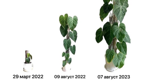 🪴На фото Филодендрон Сплендид (Philodendron Splendid), и скорость его роста. Освещение: Полутень. Прямые солнечные лучи погубят или навредят растению. Полив: Умеренный. Избыток влаги приведет к гниению корневой системы. Влажность: Влажность воздуха это важно! Опрыскивайте растение или используйте увлажнитель...