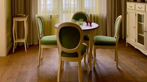 Последние десятилетия выбор тканей основан на нейтральных цветах, где в основном преобладают оттенки серого и бежевого, с акцентами бирюзового и цвета охры. Все интерьеры похожи друг на друга. И как же редко стал встречается красивый цвет! Вот прекрасный пример яркого и при этом очень мягкого интерьера, где основной фисташковый цвет дополнен сливочным и мягким натуральным цветом дерева. Насыщенный зелёный цвет дивана и стульев подчёркивают яркие аксессуары зелёного, винного и красного цвета...