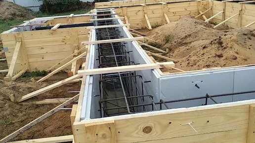 Эффективный способ установки опалубки, утепления будущего фундамента и сборка арматурного каракаса