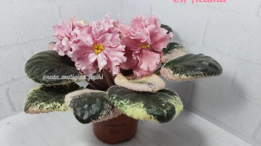 🌿🌻🌿ЕК-Агата На фото цветет молодая розетка) Огромные (7см) полумахровые волнистые звёзды цвета оранжевой зари. Выставочный пестролистник из тёмно-зелёных овально-зубчатых листьев с широкими розово- кремовыми краями, в центре взрослой розетки – розовые листья с зелёной полосой посередине...