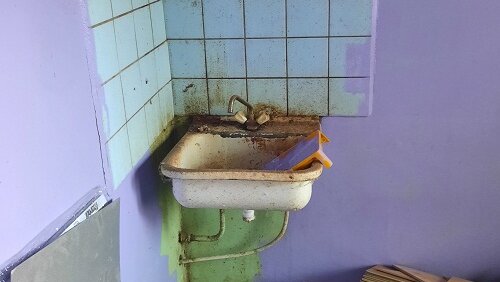 Начну с описания того, как выглядела кухня до ремонта. Стены были окрашены масляной краской в сиреневый цвет. Красили стены недавно, видно хотели обновить ремонт, но получилось очень неряшливо. Во первых все стены в разводах, а во вторых измазали всю плитку при покраске. Сантехника, также выглядела очень печально, металлическая мойка была покрыта ржавчиной, а смеситель требовал замены. В принципе, в таком состоянии находилась вся однокомнатная квартира. Про ремонт комнаты и прихожей можно прочитать на моем канале...