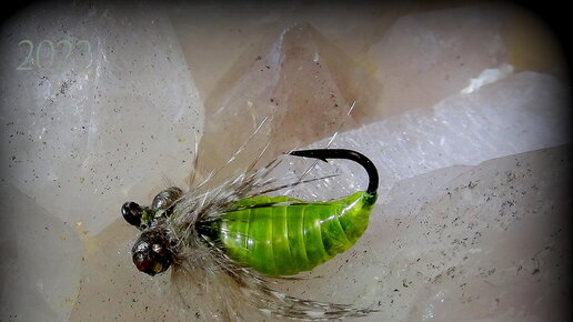 вес 0.7 грамм крючок №12 глазки- две вольфрамовые головки d=2мм на леске припой d=0.8 мм нимф скин формируем грушевидное тело из проволоки и ниток нитки закрепляем лаком или клеем обматываем тело плёнкой и закрепляем ножки из цесарки формируем дабпетлю из даббинга или пера и завершаем головку...