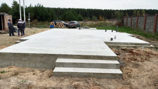 Плитный фундамент под дом. Заливка монолитной железобетонной плиты фундамента.
