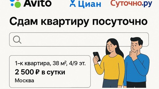 Аренда недвижимости, длительно и посуточно, сдам апартаменты, гостевой дом, отель, гостиница, всё это в куче в одном объявлении может быть сразу на всех площадках объявлений. Что-б разобраться в этом, человек не имеющий опыта попадает на контакт агенту недвижимости в лучшем случае, но однозначно то что присутствует развод почувствует обыватель, но это легально, это бизнес без обязательств. Площадки авито, циан, и суточно.ру постоянно тоже стремятся чтоб интерес не проходил мимо их организаций, они же старались в исполнении интернет площадке...