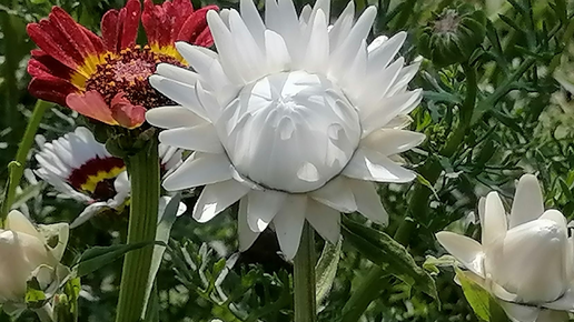 Уже второй сезон подряд пытаюсь вырастить гелихризум. Сеяла из этого пакета. В первый раз посеяла сразу в грядку - потеряла, не нашла. В этом году посеяла остатки семян в горшочек, получился 1 всход. Сейчас единственный гелихризум цветет в окружении однолетних хризантем: Очень красиво смотрится. Я раньше гелихризумы выращивала кучками, разных цветов. Смотрелись не очень. Типа такого. Фото из интернета. А вот такое сочетание, когда гелихризум всего один среди других цветов, мне кажется удачным. Белый цветок очень красиво выглядит, яркий...