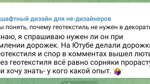 Бесконечные споры про геотекстиль сбивают нас с толку. Надо — не надо? Как понять и кого послушать? Как всегда, предлагаю подумать и порассуждать. Геотекстиль на дорожках Какой бы способ для организации дорожек мы не выбрали, подготовка основания проходит одинаково. В первую очередь, мы убираем плодородный грунт, чистим площадь будующей дорожки от корней растений. Следующим шагом делаем песчано-гравийную отсыпку или бетонное основание. ❗В любом случае, мы закрываем чистую землю и солнечный свет на неё попадать не будет...