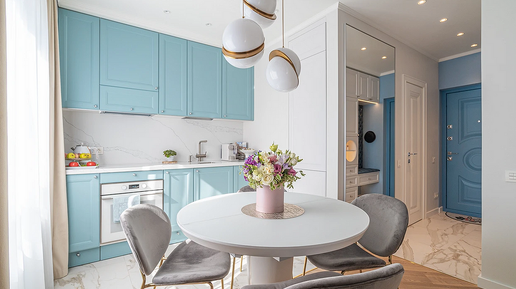 Голубой в интерьере кухни: как применять и с чем сочетать цвет (86 фото)