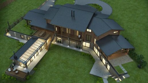 Данный проект был разработан нашими архитекторами как проект дома для гостиницы. Результатом явилось роскошное строение площадью 1840 кв.м, в котором предусмотрено все для комфортного проживания и релакса: просторные апартаменты, бассейн, сауна,тренажерный зал, зона отдыха,уютный ресторан с панорамной крышей, террасы и патио. Дом разработан с учетом окружающего ландшафта и природных особенностей рельефа. Также данный проект дома для отеля подойдет и для индивидуального проживания в качестве виллы...