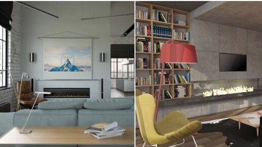 Гостиная в стиле лофт с камином