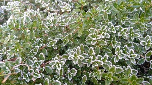 Вот и нас посетил заморозок. Что же делать...Не стала огорчаться, а взяла телефон и запечатлела последствия минусовой температуры. В 6:30 утра было минус 2 градуса — это у нас на юго-востоке Подмосковья. А на севере, наверное, и все 4. Иней такой чарующий. Вы узнали тимьян? Ремонтантная земляника «Али-Баба». Последствия минусовой погоды отразятся на кустах. Цветки почернеют. Однако зелёные ягоды будут краснеть. Преимущество ягодника в длительном плодоношении и сохранении вкуса, несмотря на перепады погоды...