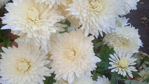 За окном пасмурно, периодически идёт дождь, солнышко уже редко светит.Греют душу только осенние хризантемы .Выглядишь в окно, а они как невесты во всем белом Куст у меня высокий, пышно цветет, приходится его подвязывать, чтобы белоснежные цветы не пачкались о землю...