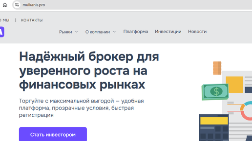 Сайты m-kanis.com и mulkanis.pro подают себя как “инновационный брокер” с доступом к мировым рынкам, выгодными условиями торговли и обещаниями стабильной прибыли.