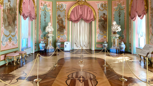 Начало публикаций: В статье попробуем разобраться, чем привлекательны интерьеры Китайского дворца и почему Зал Муз считается лучшим дворцовым интерьером Петербурга восемнадцатого века. Получила название «голубая» по цвету стен в голубом шелке. В девятнадцатом веке обветшавший штоф заменили на фрески художника А. Е. Бейдемана с картин Рафаэля Санти - изображения ангелов в полный рост в простенках и копия с полотна «Тритон и Нереида», с картины Ван Дейка - «Мадонна с куропатками». На восточной стене копия с картины итальянского художника Франческо Альбани «Похищение Европы»...