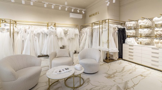 Дизайнеры студии «Нью Грейд» разрабатывали интерьер свадебного салона Natalie L в лучших традициях европейского дизайна — вне времени и при этом актуального на годы вперед. Его хозяйке Наталье Антипиной, эксклюзивно предлагающей лучшие модели европейской свадебной моды, конечно, хотелось особой атмосферы в салоне и достойного фона для шикарных нарядов. Наталья Горячева,