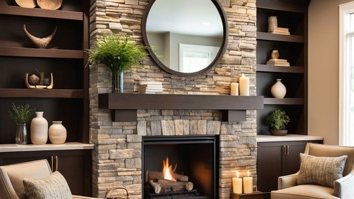 Оформление зоны камина искусственным камнем