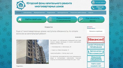 Югорский фонд капитального ремонта запустил электронную приёмную