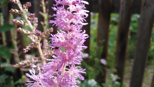 Вечерние астильбы - пушистые метелки в закатном солнце пасмурного дня