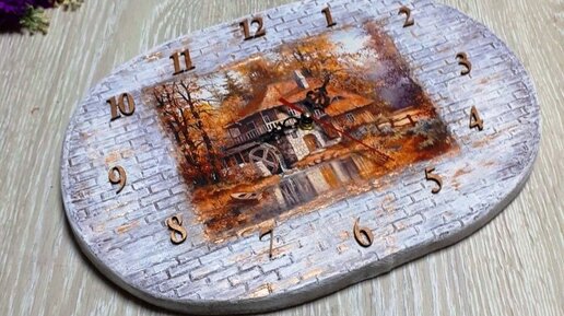 Украшены часы будут декоративной мини кладкой и декупажной картой...