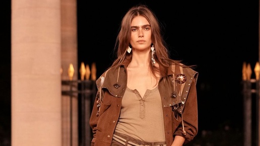 Показ стал символом смены эпохи: Изабель Марант после тридцати лет творческого пути передала бразды правления Ким Беккер. Но уход оказался не концом — а красивым переходом, наполненным солнечным светом и свежим ветром новых идей. Новая глава Isabel Marant дышит путешествиями, песком и солнцем.
