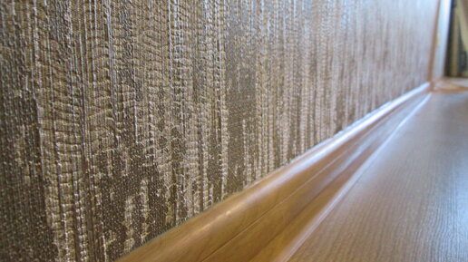 Клеил обои с переливом, плинтус не трогал - вроде ничего. Мастер-Ок