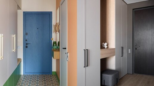 Яркий цвет, фактурное полотно, сочетание с акцентной мебелью — показываем, как профи обыгрывают входные двери и вписывают их в интерьер прихожей. 1. Темная дверная коробка Если вы придерживаетесь минимализма и используете в оформлении несколько базовых светлых цветов, интерьер может стать скучным. Избежать этого помогают контрасты. Например, можно выбрать дверь в тон мебели и отделки прихожей, но с темной коробкой — как сделали в этом проекте. Такой графичный акцент разбавит общий светлый фон. 2...
