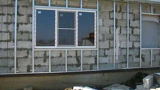 Сайдинг своими руками. Ставим каркас из профиля, профиль нужен средней толщены - 0.45 мм. подвесы чем толсче, тем лучше. Расчет производим от угла стены во внутрь ( до окна) . От середины профиля до середины должно быть 60 см. Между предпоследним и профилем у окна должно быть 60 или менее см., если больше, то ставим еще один по середине. Расстояние между стеной и профилем зависит от двух факторов, 1-ровность стены и 2-материала утеплителя...