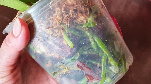 Недавно мне позвонила знакомая и стала жаловаться, что ее любимая Орхидея Фаленопсис плохо себя чувствует листья, потеряли тургор, а цветочки стали вянуть. На следующий день она приехала, ко мне с бедным цветком, и ему был поставлен диагноз «сгнили корни». Первым делом мы вытащили орхидею из горшка, и убрали все гнилые корни, целым остался только один небольшой корешок. Цветонос тоже пришлось срезать, так как он слишком много отнимал сил у орхидеи. Моя знакомая Маша была в печали, так как орхидея была подарена любимым человеком, и ей было очень жаль ее потерять...