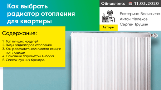 Климат большей части территории России не позволяет обойтись без системы отопления в жилых домах, административных зданиях и прочих строениях. Важнейшим элементом такой системы является радиатор, осуществляющий обогрев помещений. Мы решили рассказать, как выбрать радиатор отопления для квартиры. Детально разобраться в вопросе нам помогал Юрий Гришин, теплотехник с 12-летним практическим стажем. На рынке представлены различные типы и конструкции теплообменников, трудно сходу сориентироваться в ассортименте брендов и моделей...
