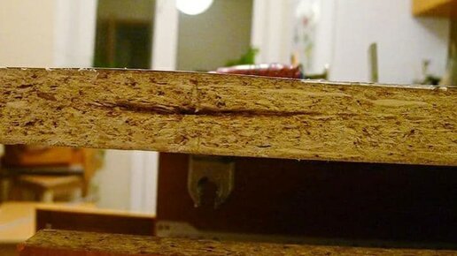 При намокании ДСП в 100% случаев разбухает — это далеко не влагостойкий материал. От попадания воды страдает и приходит в негодность кухонная мебель, а также различные тумбы под раковины и шкафчики в ванных комнатах. Какая часть ламинированного ДСП больше всего подвержена воздействию воды? Самой незащищённой частью ДСП, из которой делают мебель, являются неламинированные места — торцы и рёбра деталей. И также намоканию подвержены выемки под петли в тумбе под раковину. Особенно много таких проблемных мест в бюджетной мебели...