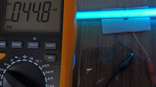 Рассматриваемая бактерицидная лампа длиной 288 мм и диаметром 15 мм очень похожа на ртутную линейную люминесцентную лампу, но без люминофора (прозрачная) и сделана из кварцевого стекла. Это стекло пропускает не только ближний длинноволновый ультрафиолет A: 400—315 нм, как и обычное стекло, но ещё и средневолновый B: 315—280 нм, а также коротковолновый С: 280—110 нм. По всей видимости, эта лампа мощностью 8 Вт, с цоколем G5. Неисправность заключалась в перегоревшей нити накала. В обычном светильнике такая лампа уже не работает, но от источника высокого напряжения легко включится...