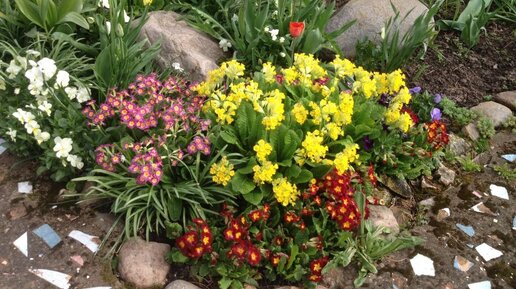 У меня гораздо больше, чем 50 сортов примулы. Поэтому в статье будет мало текста, но много фотографий. Жаль, что все примулы в одну публикацию не поместятся, но примерно 50 разных я сюда сумела разместить, при помощи коллажей. Если имеешь 50 сортов примулы, то сосчитать их точное количество уже сложно. Примулы начинают самосевом создавать новые расцветки. Моего участия для этого совсем не требуется. Недавно прочитала, что кто-то занимается выращиванием и распространением семенами прострела. А мои 50 сортов примулы я развела исключительно для себя, потому что не умею продавать цветы...