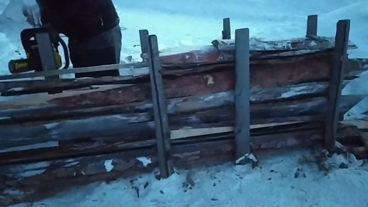 Данный козёл для бензопилы сделан из шпалины, поперечных реек толщиной 3 см, шириной 5-10 см и высотой не выше груди. Поперечинки что внизу у этого козла на которые кладут горбыль, дрова, брус, бревно, валежник, обрезь, доски - имеют высоту или толщину 3 см. Благодаря им мы не только не будем подпиливать наш козёл, но и будем чувствовать когда мы распилили дрова. Вместо шпалы можно использовать брус. Расстояние между поперечными рейками - длина дров...