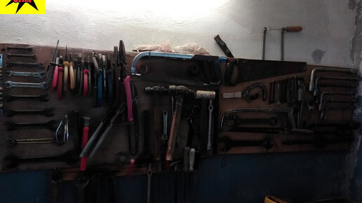 Часто используемый инструмент в гараже должен быть на видном месте, и иметь удобный доступ. Я сделал такой стенд для инструмента из двух деревянных щитов и гвоздей. Сначала просверлил в щитах отверстия в верхних углах, по этим отверстиям сделал отверстия в стене, вставил пластиковые дюбеля, и закрепил щиты шурупами к стене. Для рожковых ключей использовал небольшие гвозди, просто забив их между рожками, удобно снимать, и маркировку хорошо видно. Для кусачек, плоскогубцев и прочего подобного...