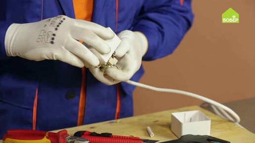 Если вам срочно нужен удлинитель, сделайте его самостоятельно! Разберите розетки и вилку. С помощью канцелярского ножа зачистите один конец провода: снимите внешнюю белую изоляцию. Рекомендуем использовать трёхжильный провод с сечением не меньше, чем 1,5 квадрата. С помощью специального инструмента для зачистки проводов зачистите концы для подключения. Подключите провод к вилке: раскрутите стопорное кольцо вилки, проложите провод и подключите его к штекерам. Чтобы с проводом было удобнее работать, скрутите его по спирали...