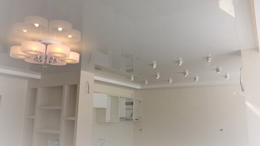 Люстра и споты на натяжном потолке