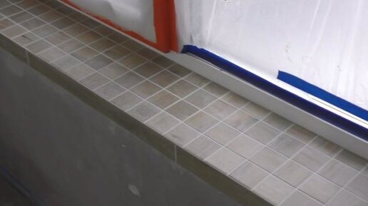 Если работают руки и нет возможности купить готовый, то этот вариант именно для вас. Используем гипсокартон, оставшуюся плитку, затирку и т.д., вобщем все то, что осталось, допустим, от предыдущего ремонта. Можно использовать и готовую плитку, например фартучную для кухни, но, как я писал выше, все делаем своими руками. Раскраиваем гипсокартон и прорезаем трапециевидные две борозды, наносим монтажную пену, складываем, закрепляем струпцинами до окончательного твердения и наш предварительный каркас подоконника готов...