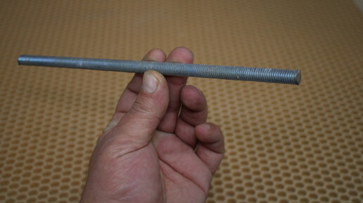 Только ленивый не использовал гипсокартон при строительстве или ремонте, как правило, внутри стены из гипсокартона находится пустота. Поэтому, закрепить саморез, а тем более шпильку весьма проблематично. Но есть одна идея, которая поможет решить данную проблему и нам не нужно ничего покупать, как обычно, быстро и просто сделаем всё своими руками. Например, нам нужно закрепить данную шпильку в стену из гипсокартона, внутри стены пустота. Зажимаем шпильку в тиски и немного убираем резьбу с помощью напильника или бормашинки...