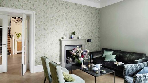 1. Природные мотивы: Обои с растительными и флоральными узорами остаются в тренде...