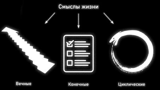Размышляя о смысле жизни, я пришёл к тому, что все ответы можно сгруппировать по трём группам: смыслы жизни, выраженные глаголами совершенного вида; смыслы жизни, выраженные глаголами несовершенного вида и смыслы жизни, предполагающие цикл.