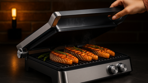 Вечером хочется горячий ужин без долгого разогрева и горы посуды. Электрогриль решает задачу за 10–20 минут: мясо, рыба, овощи, вафли — всё на одном приборе. Разберёмся, какой электрогриль купить для дома, чтобы он действительно работал каждый день и не стоил лишнего.
