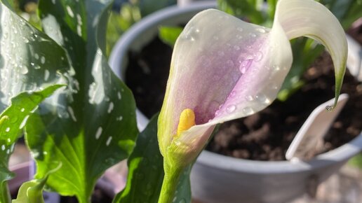 В этом году первый раз попробовала выращивать каллы. Статистика – из 11 купленных луковиц прижились 10, одна луковица пришла в плесени, вылечить не удалось, выбросила ее. Из 10 посаженных в кашпо 2 заболели. Одна из них погибла, у второй пытаюсь спасти деток, не уверена, что получится, но пытаюсь. Итого осталось 8 калл, но не все зацвели. Выявленные ошибки в уходе – каллы не любят перелива, а у меня плоские кашпо без отверстия для слива. И хоть внизу слой дренажа, на следующий год буду высаживать в другие емкости...
