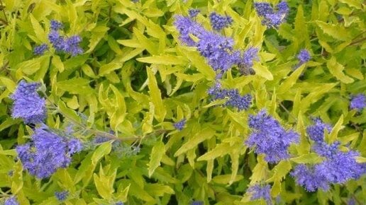 Кариоптерис Ворчестер Голд удивит золотистым оттенком своих листьев, от которых исходит приятный лимонный аромат. Несмотря на невысокий рост, Кариоптерис станет заметным декоративным украшением любого садового участка. Описание Кариоптерис — небольшой кустарник, вырастающий до 1 м в высоту. Прямостоячие ветви очень прочные, помогают растению хорошо держать форму. Небольшие продолговатые листья светло-зеленого, почти желтого оттенка. Кариоптерис Ворчестер Голд — цветущий кустарник. Множество соцветий с мелкими синими цветочками с приятным ароматом, радуют своим видом с августа по октябрь...